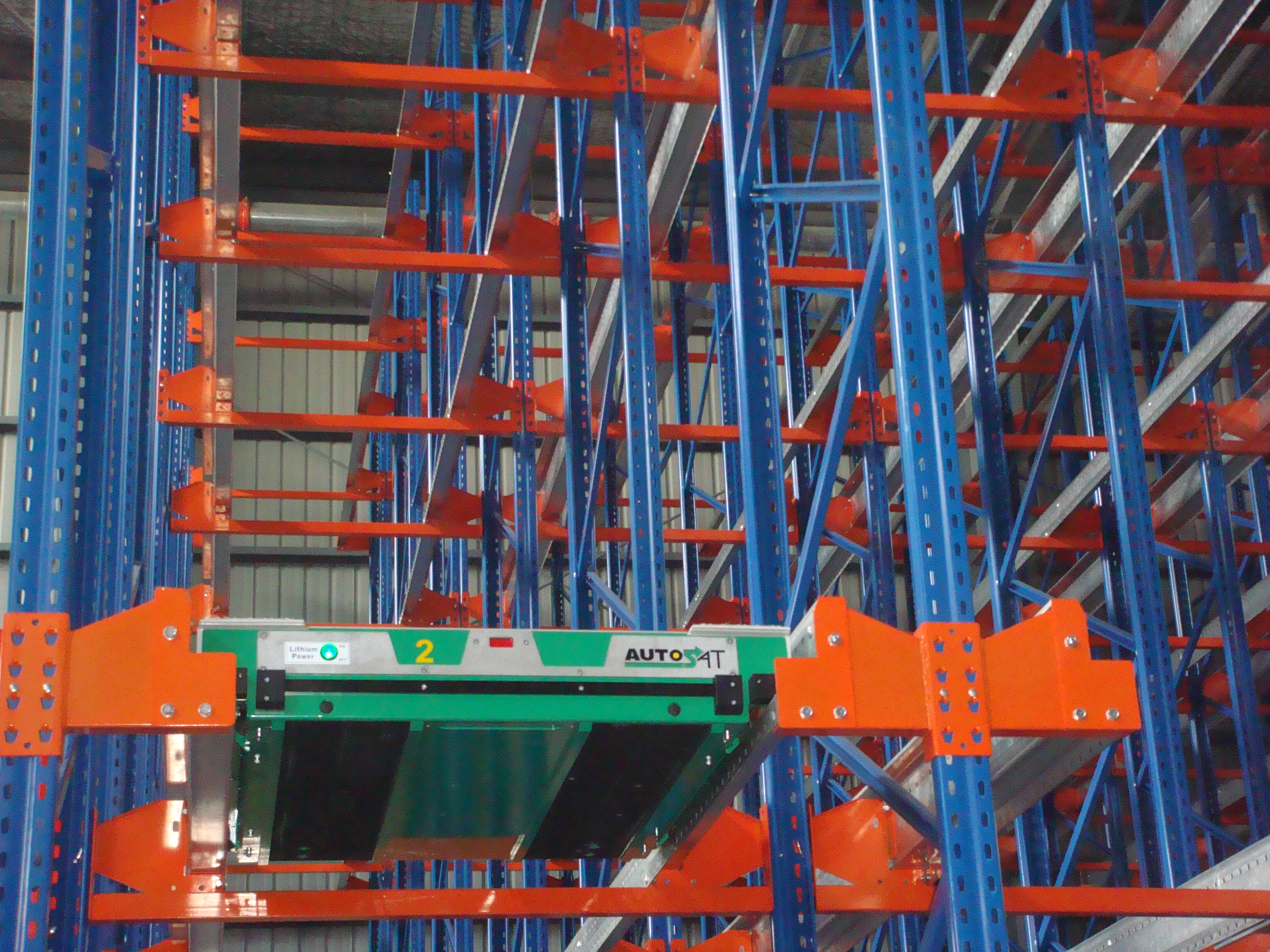 結構:由穿梭車貨架、電池驅動的穿梭車、叉車三部分構成。穿梭車在托盤下面的軌道上,它可以頂著托盤運行,把托盤上的貨物存入貨位或從貨位取出。