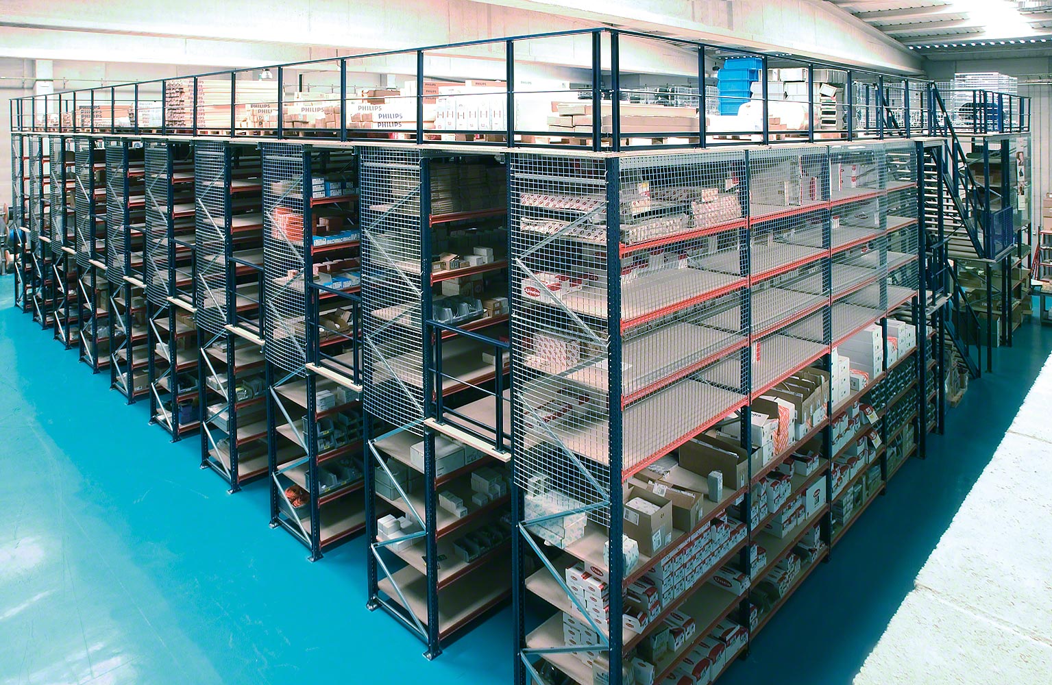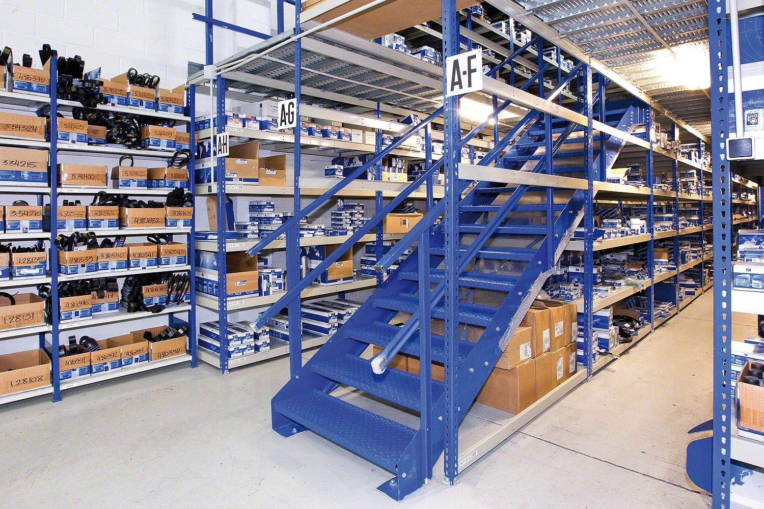 閣樓式貨架最適合對品種多的小件物料進行存儲管理,可配合零件盒或周轉箱對物料進行分類管理。根據物料物流特點,應將出貨頻次大的物料存儲于底樓貨位,出貨頻次小的物料存儲于樓上的貨位。