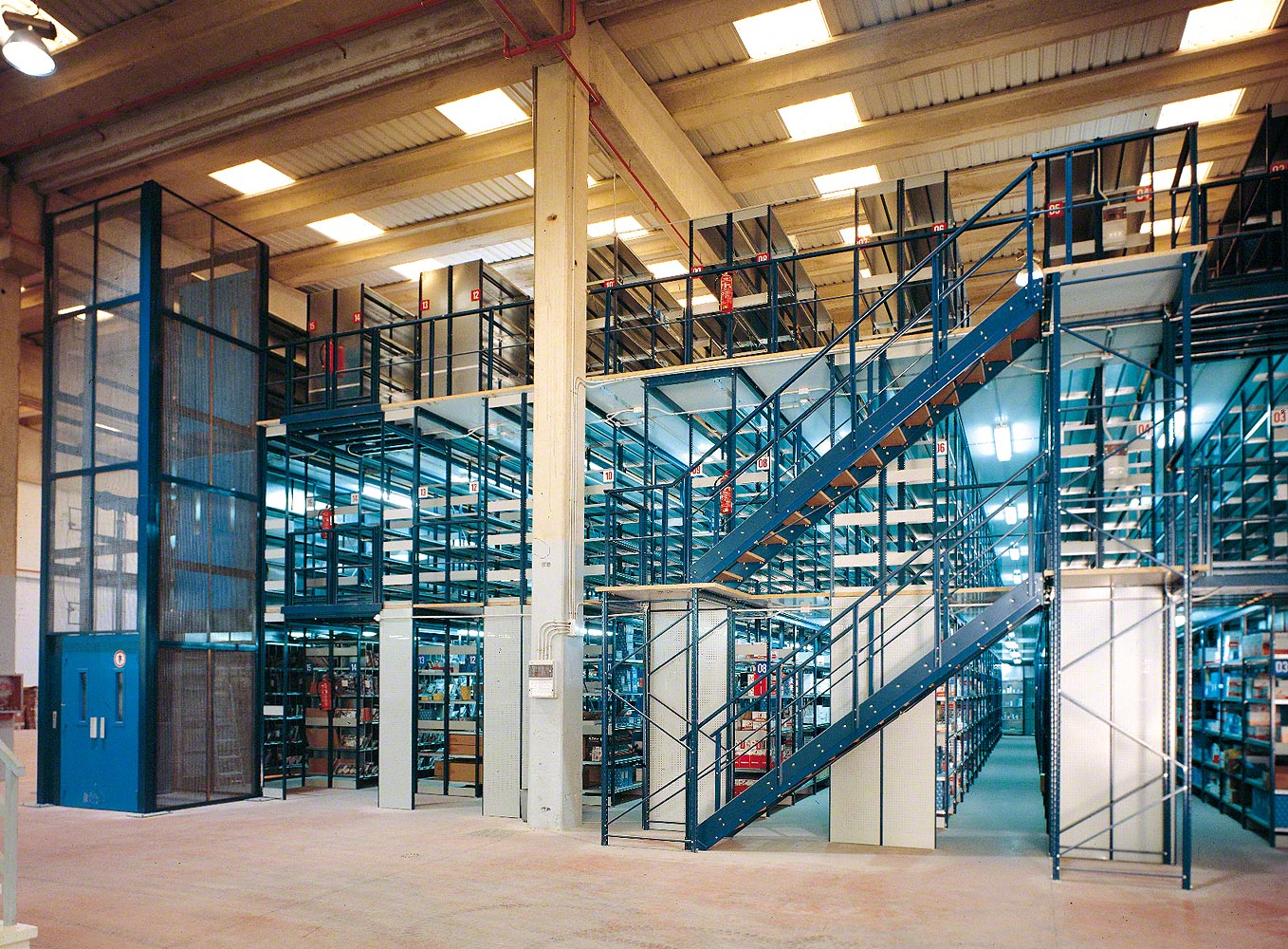樓面空曠處配防護欄,工作人員配有上下走動方便的樓梯使用。樓面板通常選用都靈專利冷軋型鋼樓板,互扣式結構,樓面板與樓板梁之間采用都靈專利鎖緊機構鎖定。與傳統花紋鋼樓板或鋼格柵樓板相比,它具有承載能力強、整體性好、承載均勻性好、精度高、表面平整、易鎖定等優勢。并且易匹配照明系統,存取、管理均較為方便。當然也可選用鋼格柵樓板、花紋鋼樓板、木樓板等樓板。