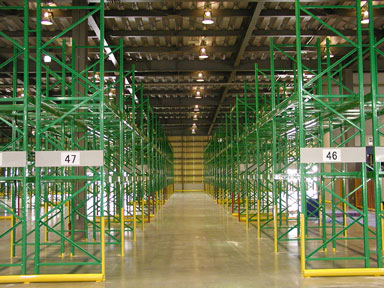 結構:俗稱橫梁式貨架,或稱托盤式貨架。采用組合式結構,依靠橫梁與立柱連接。貨架全為可自由拆裝,可以根據客戶的要求設計,制作各種型號、規格、尺寸的貨架。良好的存貨流轉,活動連接結構合理,承載力強,裝拆快捷,層格變動靈活,組合多變。背靠背雙排貨架之間有連接桿連接,上下75mm為節距自由可調,可配置普通叉車、前移式叉車、三向叉車等各種型號叉車,是最常用的倉儲系統設計方案。另外,還可根據存儲單元集裝設備的特性加裝如:隔檔、鋼層板(木層板)、金屬絲網層、倉儲籠導軌、油桶架等功能性附件。滿足不同單元集裝設備形式的貨物存儲。